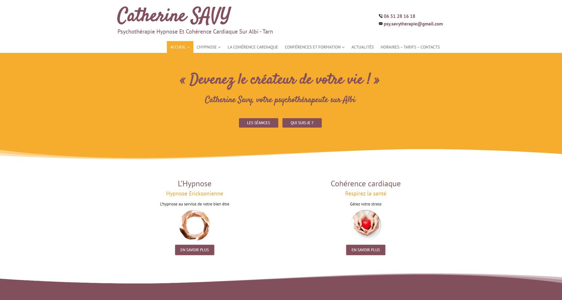 Catherine Savy souhaitait un site vitrine extrêmement simple, qu’elle puisse modifier elle-même tout en présentant des actualités et éléments modifiables au quotidien.