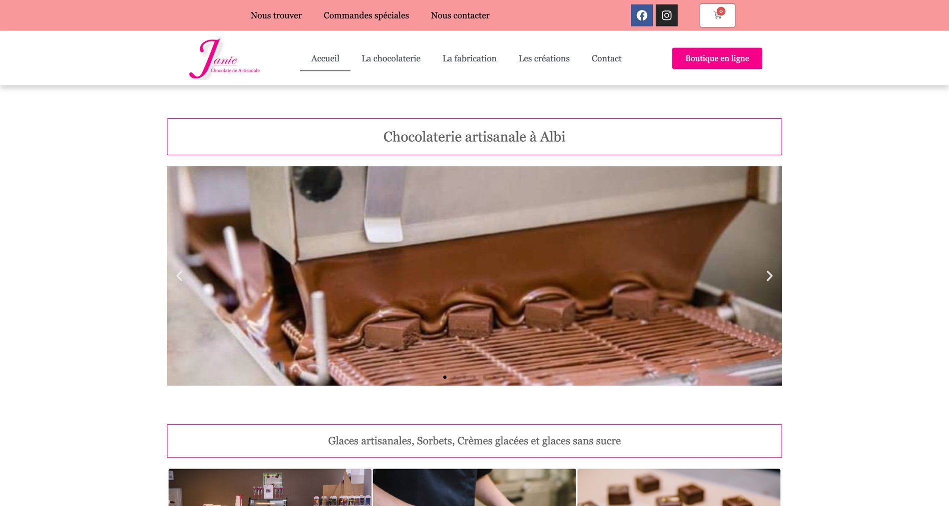 La Chocolaterie Artisanale Janie Chocolaterie, spécialiste du chocolat dans le Tarn (et beaucoup plus loin), nous a confié la modification de son site vitrine pour y ajouter une section e-commerce