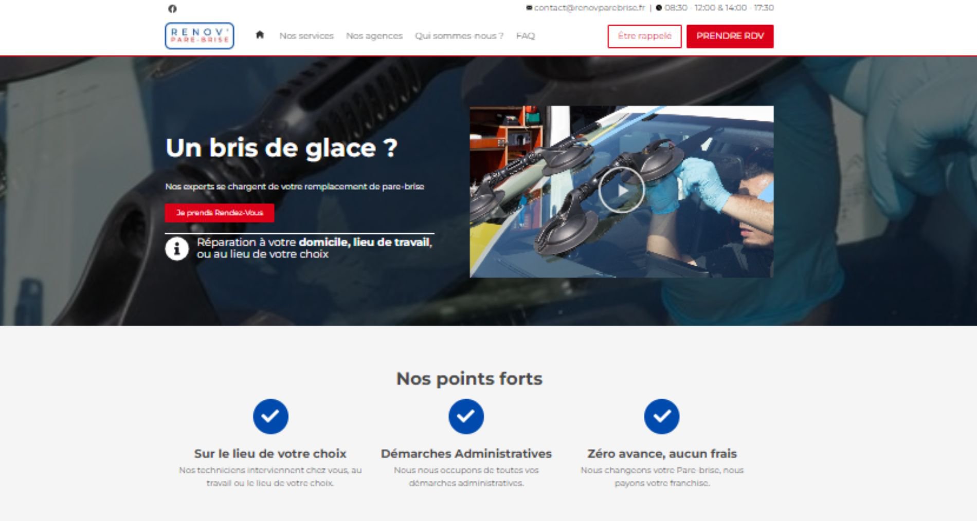 Rénov’ Pare-Brise est un spécialiste du remplacement et de la réparation de pare-brise, offrant ses services aux particuliers et aux professionnels. Notre mission était de concevoir un site vitrine clair et intuitif, permettant aux visiteurs de découvrir facilement les prestations proposées, de prendre contact avec un centre du réseau disponible en France.
