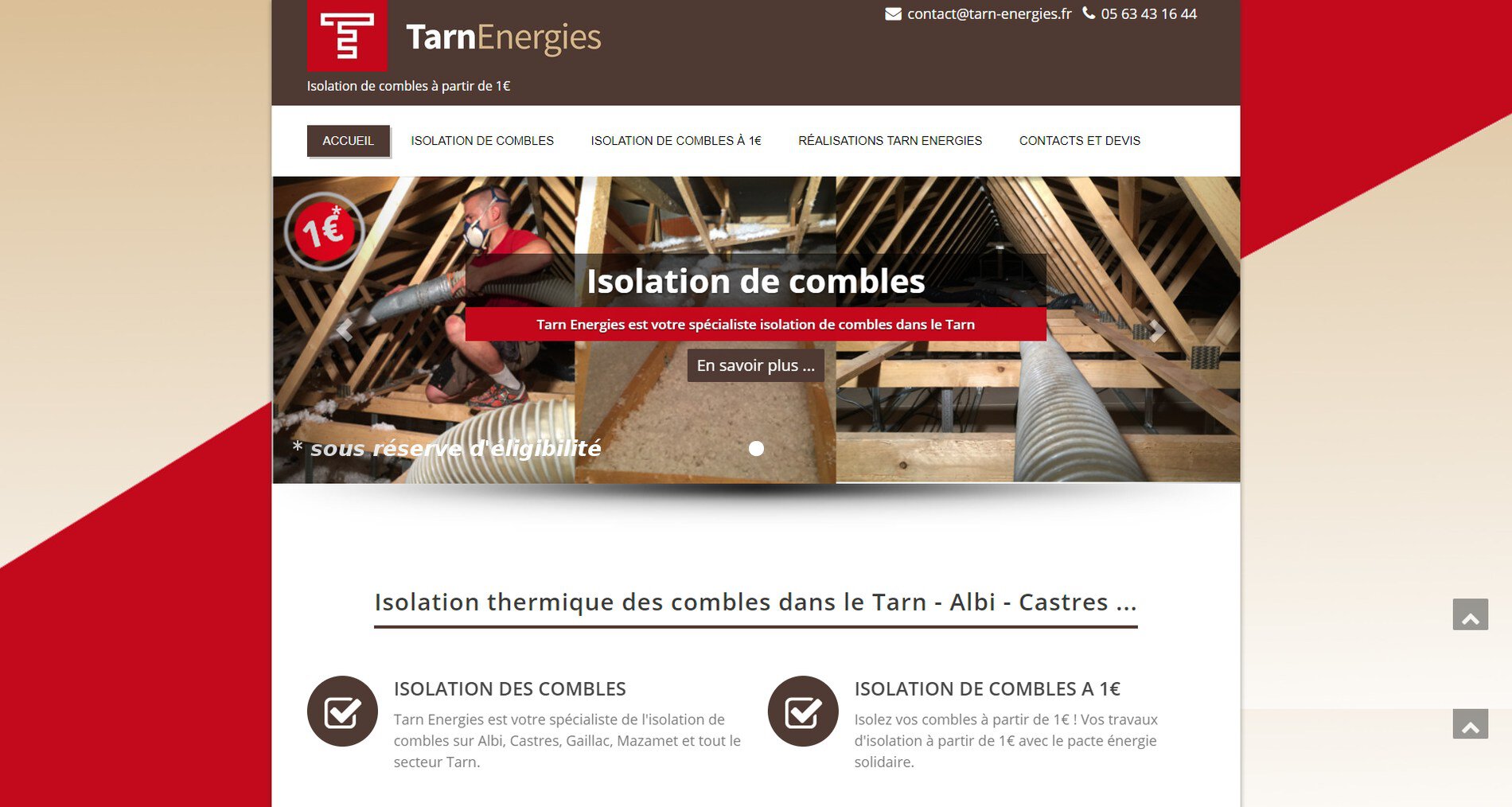 Une seule page avec quelques explications ont permis de mettre en place le site, puis de le placer sur le département du Tarn pour présenter l’isolation de combles de l’entreprise.